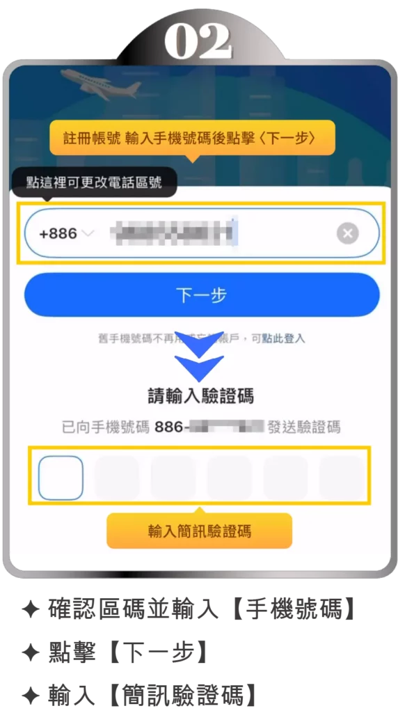 - 查收【簡訊驗證碼】,並在下方欄位輸入該【驗證碼】